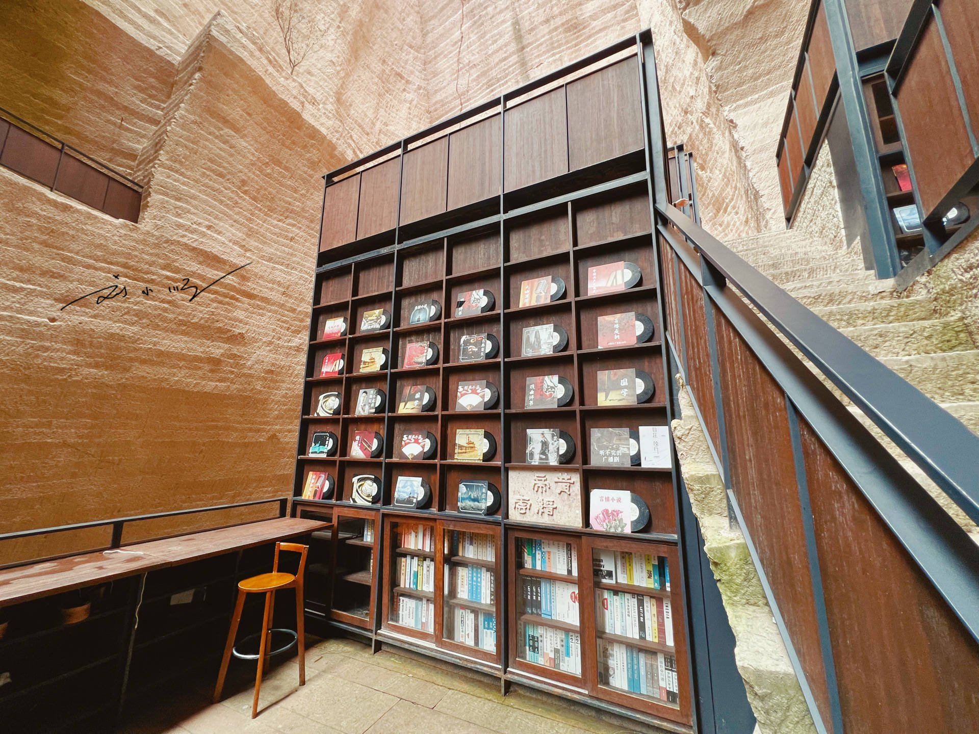 当我们一走进“岩宕书房”之后便恍然大悟,不禁被眼前的景象所震撼,因为这可不是普通的书店,而是建在一家巨大洞窟里的特别的书店。