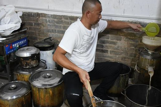 盛夏时节,在河南浚县南大街一座有一百多年历史的老宅院里,今年43岁的蔺海军正在院子里制作豆腐脑,做豆腐脑是蔺海军家祖传的手艺,他是第29代传人,20多岁就跟着长辈学习这门手艺,这一做就是将近20年。