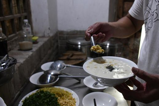 盛到碗里的豆腐脑,加上由葱花、姜、蒜、辣椒、榨菜、香菜和秘制韭花酱等十几种材料配置成的辅料,就可以趁热吃了,吃的时候讲究一个“热”字,按当地人的说法,那就是要“烧着嘴、烫着牙”,才能吃出这种食物最美的味道。
