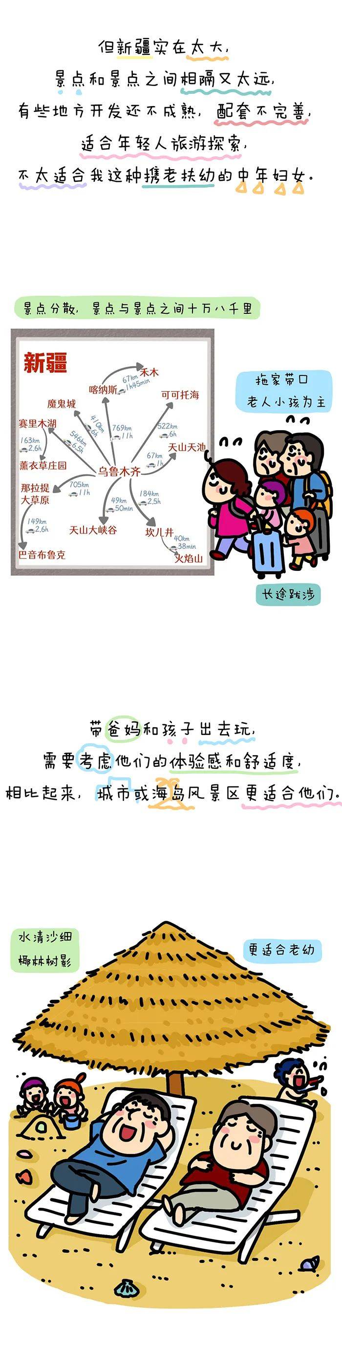 有一说一,拖儿带女携老,新疆还是不太适合的。