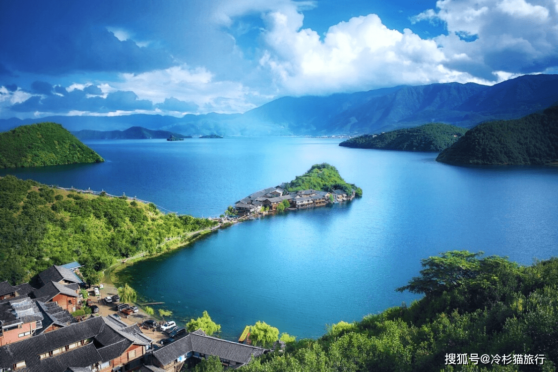 环湖泸沽湖,来到这里,看日出日落,划猪槽船游湖,风景如画;