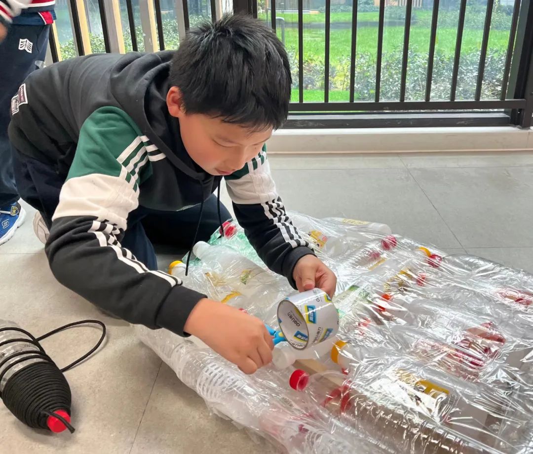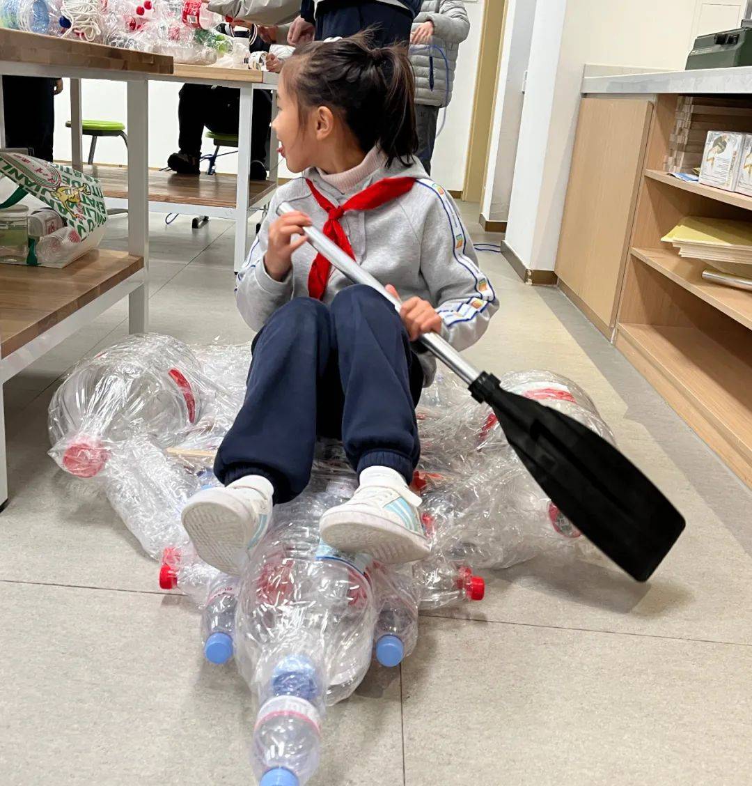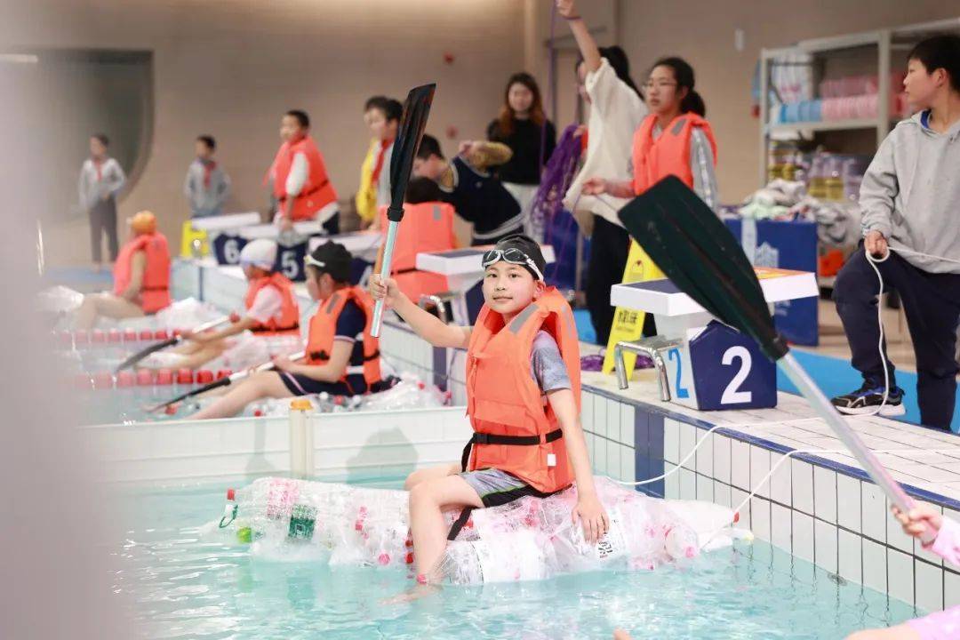 船桨拍打水面激起的浪花、现场震破天际的加油声、学生们咬紧牙关冲刺的瞬间……不起眼的塑料瓶经过团队的群策群力,化身为可以载人的小船,每个孩子都在实践中收获快乐。