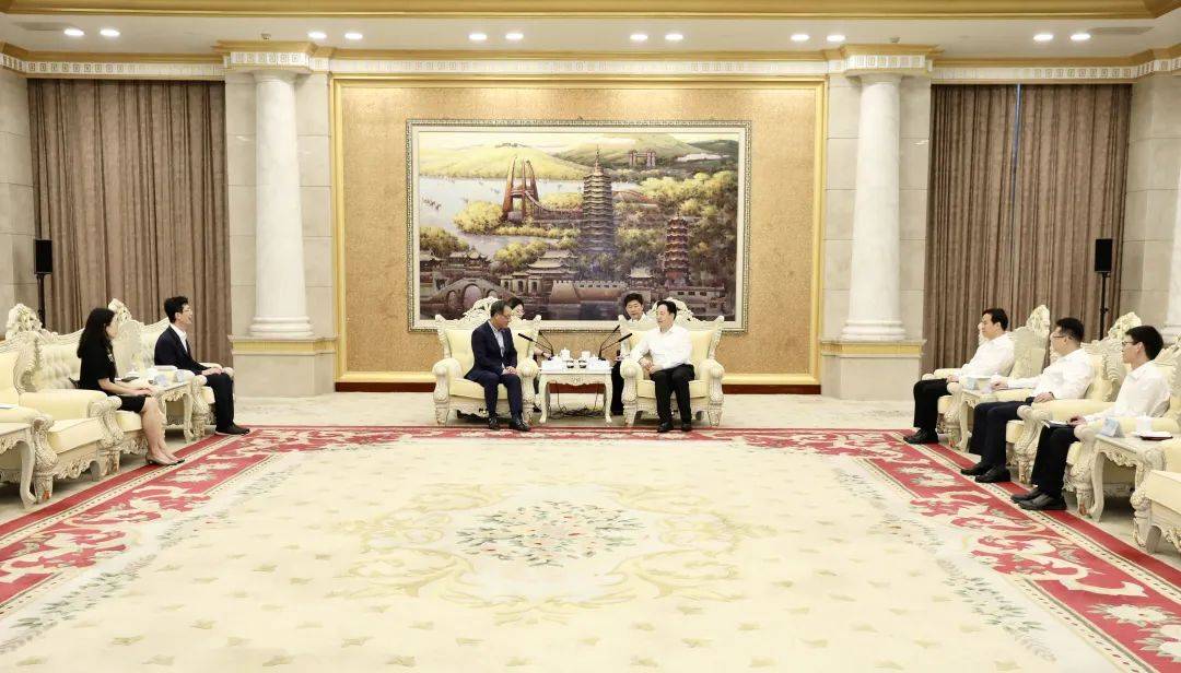8月1日,市委书记陈金虎在市行政中心会见韩国驻沪总领事金英俊一行,双方围绕进一步加强投资合作、贸易往来、人文交流等进行深入交流。