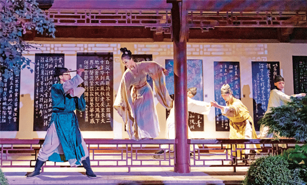 《夜上黄鹤楼》诗碑廊表演引人入胜。