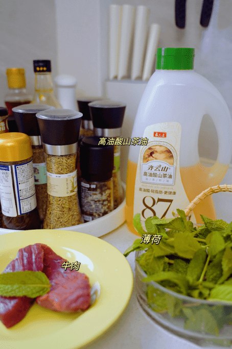 薄荷牛肉末搭配炒,配上齐云山高油酸山茶油,不仅能够解除油腻,还吃出非常爽快的味道,让人心情舒畅,加上点红辣椒的微微辣味,浓郁的牛肉香味伴着又辣又清凉的口感,吃米饭绝对能多下两碗,味道超级爽!一上桌就恨不得秒没。