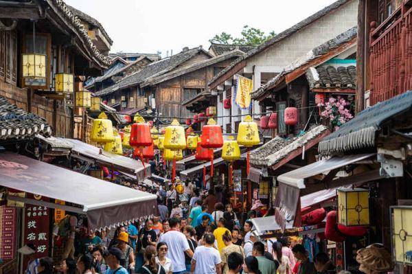 游客在青岩古镇主道明清街上漫游。人民网 阳茜摄