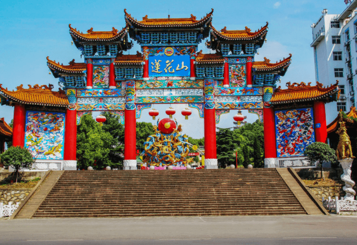 莲花山旅游区,坐落于鄂州市洋澜湖畔,景区内山连山,路接路,30多处人文景观如星罗棋布,点缀其中,建筑风格以龙和莲花为主体,是修生养性、观光游乐的好去处。