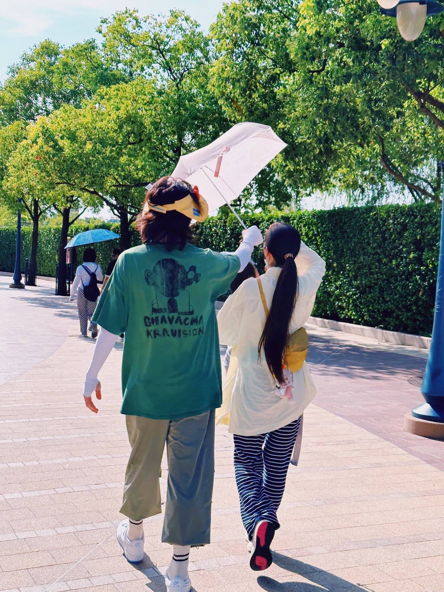 如果不看脸的话,他们这背影在人群中真的是随处可见呀。郭碧婷这件条纹阔腿裤的美,你能get到吗?不过给郭碧婷撑伞的向佐,真的还有爱呀。