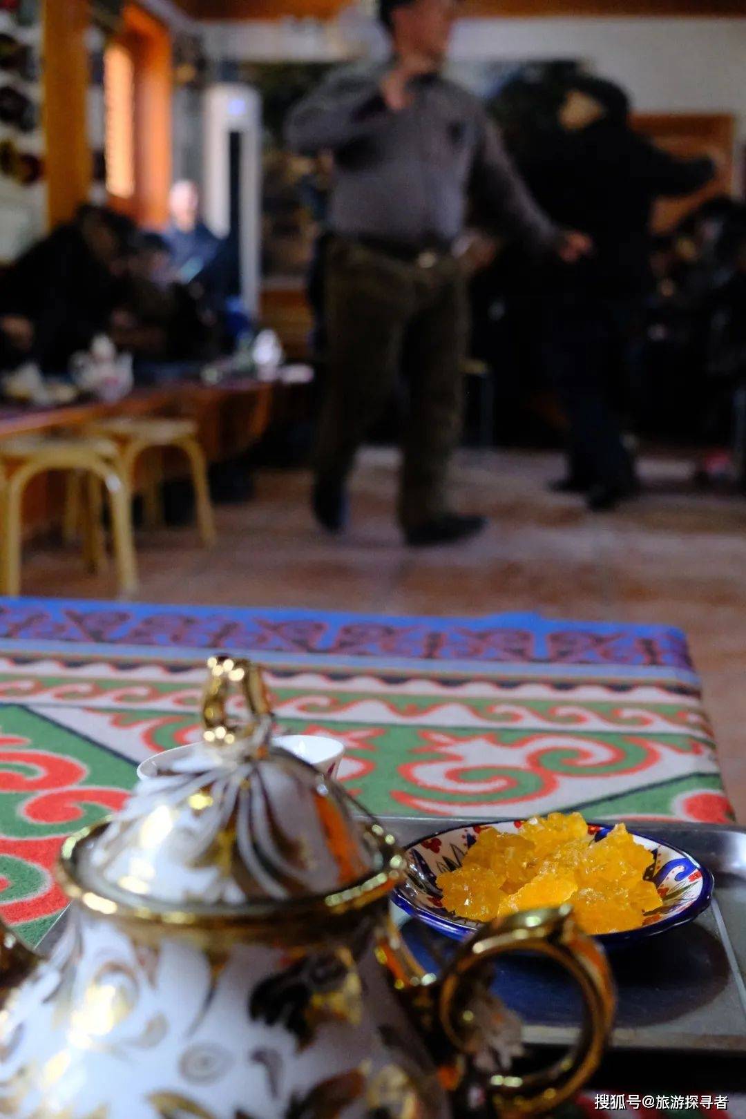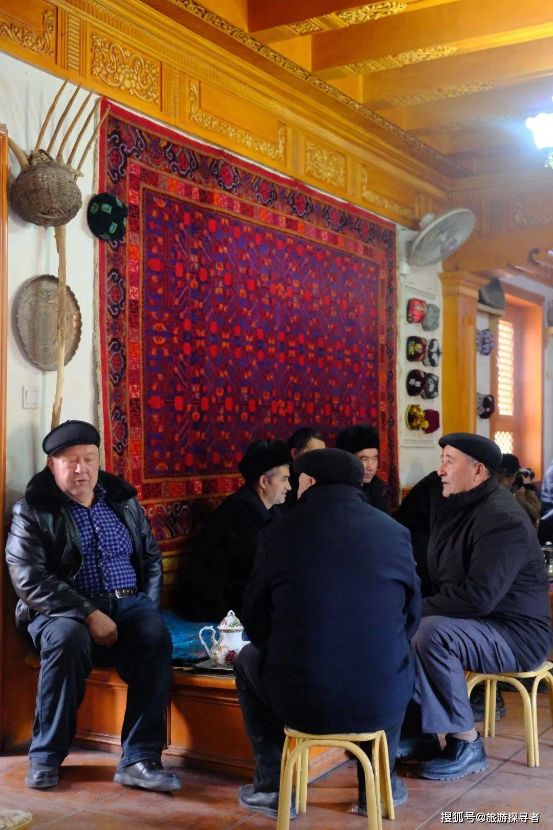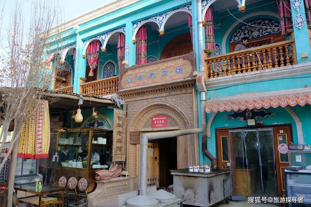 4、在古城西区的百年老茶馆不可错过!里面都是当地的维族爷爷在喝茶、跳舞、弹琴。西域歌舞的氛围非常欢乐,大爷们也会热情的送你馕吃。不过要学会入乡随俗,他们都是脱了鞋上到毯子上,会有浓重的脚臭味。一壶茶60-80元,够一桌人喝,可以无限续水(当地人的价格会比游客便宜很多)。旺季时如果人爆满,也可以选择民间乐师古地茶馆。