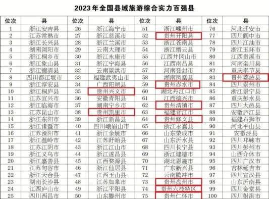 多彩贵州网讯(记者 彭典)近日,全国县域旅游研究课题组、华夏佰强旅游咨询中心联合发布第五届全国县域旅游研究成果《全国县域旅游高质量发展研究报告2023》出炉,公布“2023年全国县域旅游综合实力百强县”名单。
