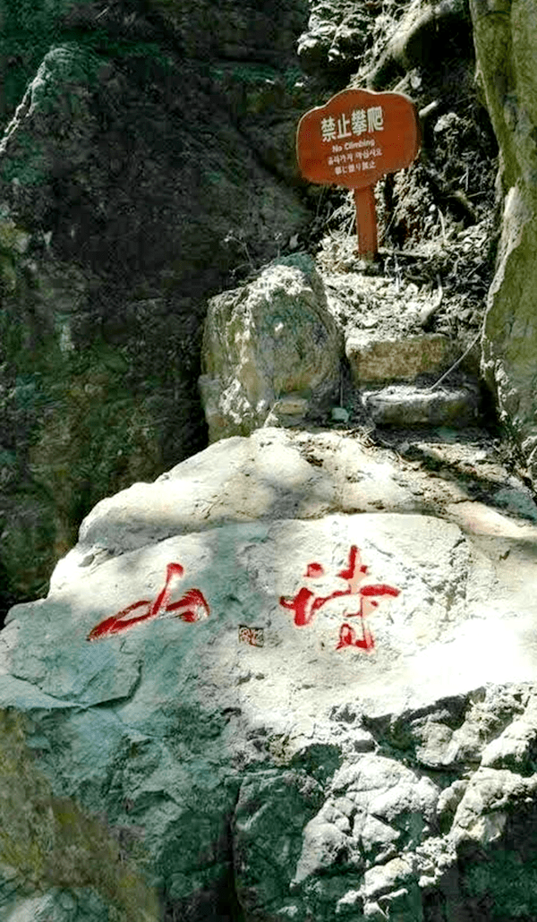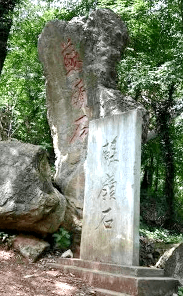 再往上,叠石攀登,沿孟浩然走过的苏岭诗径,便来到了奇石堆叠的苏石岭。石上有刻“诗韵”、“苏岭石”字样,一块状如灶台的石头据说是当年皮日休生火做饭的“锅台”。