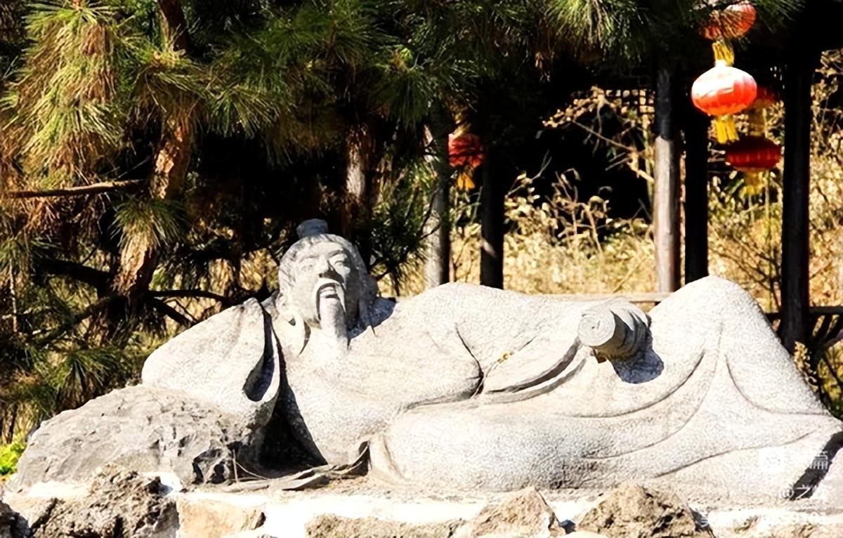 依次观瞻,出得孟园,见有孟浩然石刻雕像醉卧于松下花间,手执书卷双目微合,逼真再现李白《赠孟浩然》诗情,“吾爱孟夫子,风流天下闻”。夫子醉态尽毕现,憨态实可掬。看了孟浩然生平,知他初心非“迷花不事君”,恰也是“不才明主弃,多病古人疏”。夫子的大半生,一直在仕而不成,隐又不甘的两难境地中纠结。