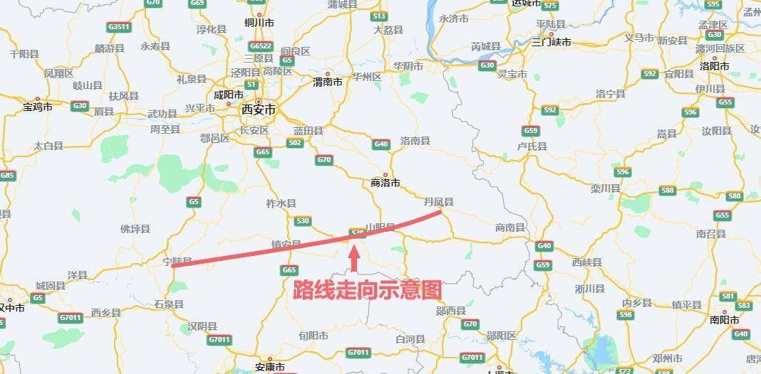 丹宁高速;同时也是陕西省“两环六辐射三纵七横”高速公路网新规划的18条联络线之一。陕西丹宁高速公路起点位于商洛市丹凤县竹林关镇东设枢纽立交与沪陕高速相接,路线整体走向由东向西,途经丹凤县、山阳县、镇安县、宁陕县,终点位于安康市宁陕县城南侧与拟建宁陕至石泉高速相接,建设路线全长约222公里。