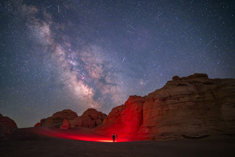 盛夏时节,众多游客来到新疆维吾尔自治区哈密市,在璀璨星空下仰望苍穹,与银河“合影”。