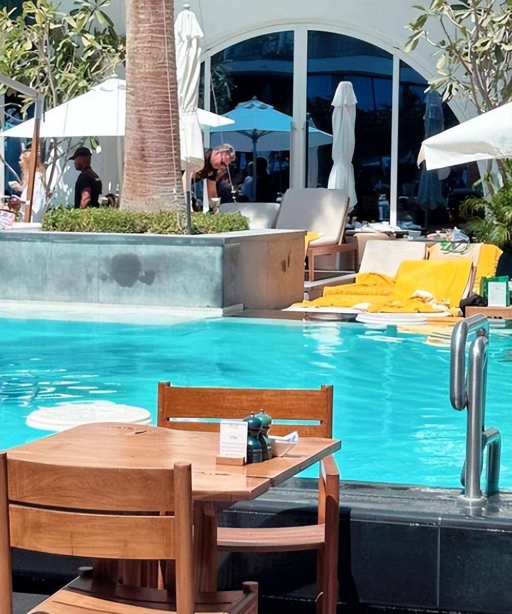 还有丰富多彩的旅行和度假照片。整个场景其实就是游泳池湛蓝的海水,整个构图色彩非常丰富,白、蓝、黄、棕的颜色非常清新,视觉效果很好。