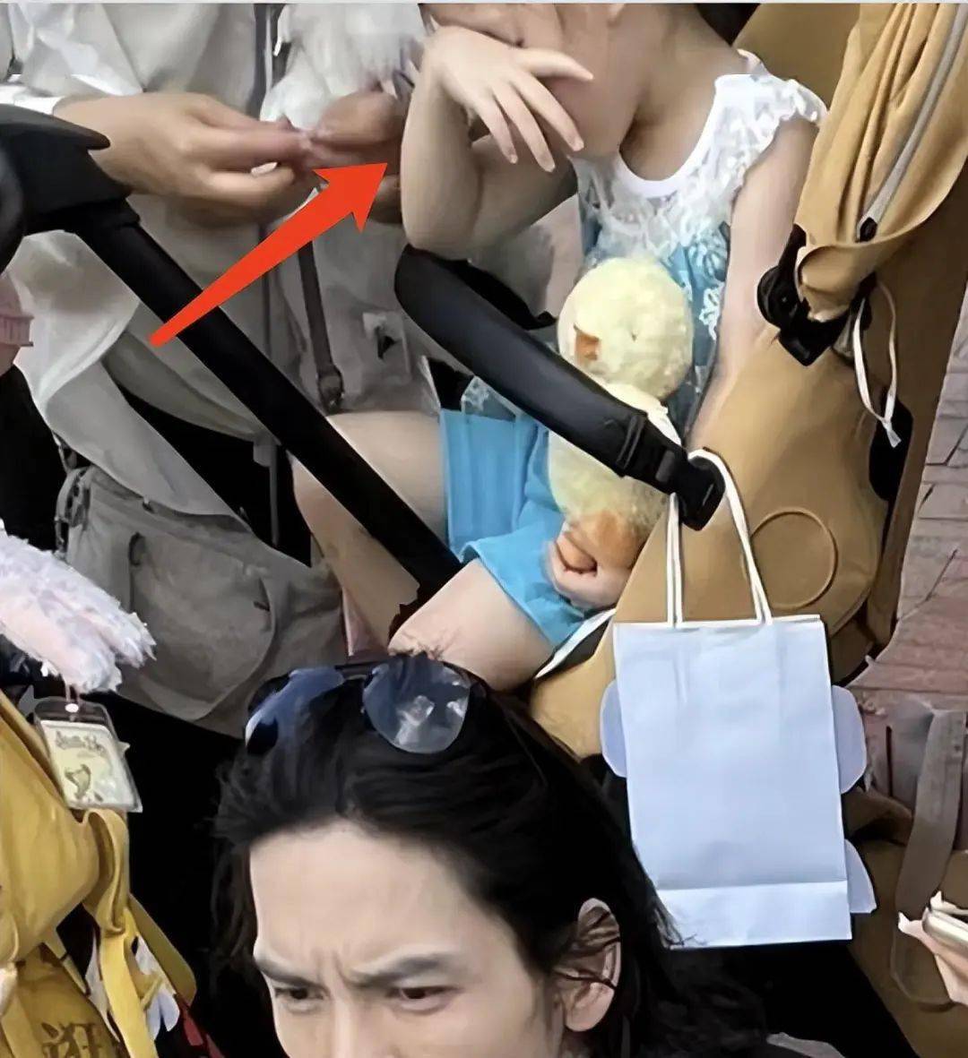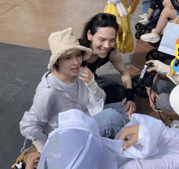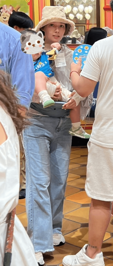还有网友晒出了一些偶遇照,郭碧婷居然把腰凳绑在自己的身上,她带娃真的做到了亲力亲为,实在是太接地气了。