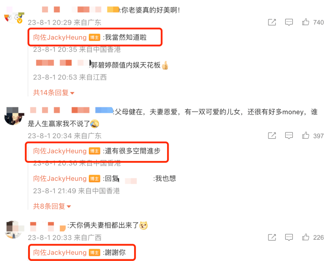 向佐回复了很多网友,看到有网友庆幸宝宝长得像郭碧婷,不像爸爸,向佐有些生气,虽然嘴上说着不介意,但是让网友去看童年照,看看宝宝到底更像谁,不过这条评论已经被删除,不知是不是网友自己删的。