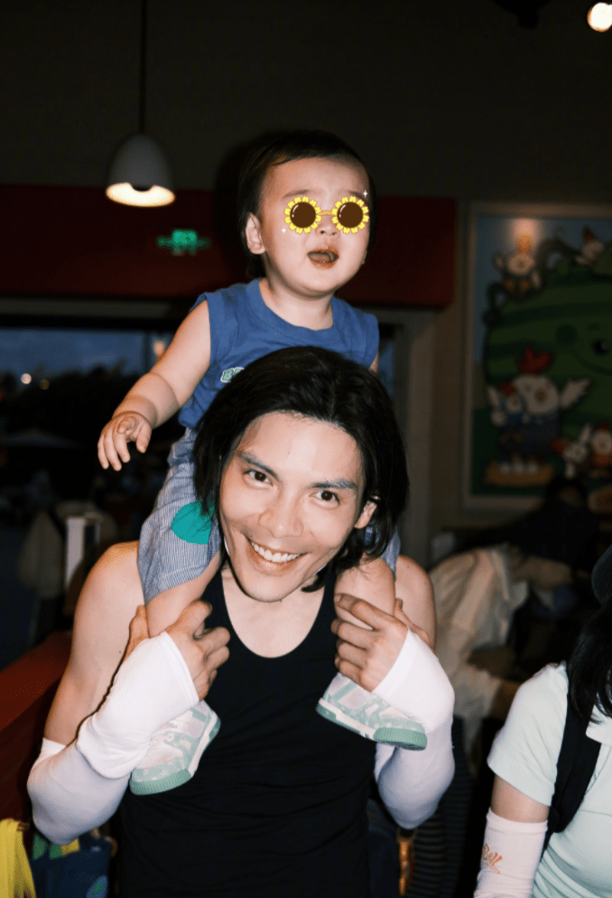 弟弟也有同样的待遇,值得夸赞的是,一家四口出门都没有戴口罩,想必两个孩子的真容被不少游客认出吧。