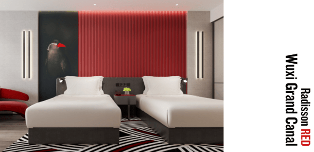 以无锡古运河丽芮酒店为例,丽芮携手国际顶尖设计团队DAS Concepts,以品牌色:红色为主基调,携艺术、设计、时尚等丽芮基因中携带的潮流风格元素,深入了解无锡本地传统文化精粹,精准提取了京杭大运河、传统的苏式建筑(如桥梁、屋檐)、昆曲、苏绣,以及素有"长袖善舞"之说的水袖等等在地元素。