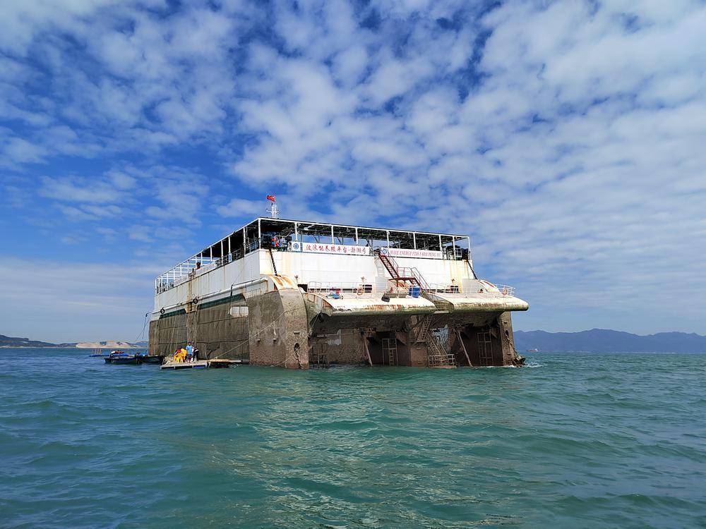 2018年引进的波浪能养殖平台“澎湖号”,是我国首个半潜式波浪能“渔业养殖+休闲垂钓旅游”平台,由广东大麟洋海洋生物有限公司与中国科学院广州能源研究所共同出资研发设计,于2019年6月建成,并于当年8月投放到桂山海域蜘洲岛养殖渔场进行运行示范,是集波浪能、太阳能发电、网箱养殖、养殖工船、休闲渔业于一体的半潜式多功能平台。