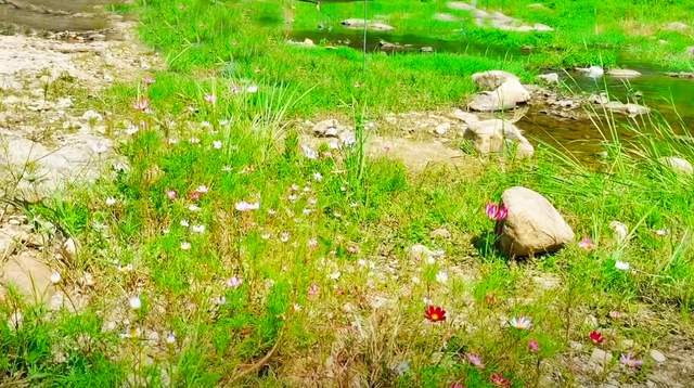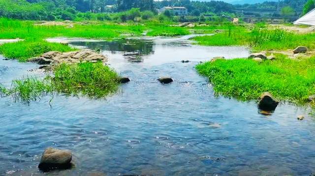 走进小河里,探着脚丫,首先会觉得河水有一点凉。这种感觉与自来水的凉不同,自来水多少带着温热,但河水是真正的清凉,是从内到外的刺激。顺着浅滩处向河中间走,清凉感会逐步加深,比如河滩边上的水可能也有温热的地方,一步走一脚,像是打开了热水瓶,清凉的水域更广。而走到河中间,这边水深会大一点,能够淹到小腿往上膝盖以下,大概十几公分。相对来说,这样的水深有限,淌水的话更好,游泳的话,只适合轻巧躺着。