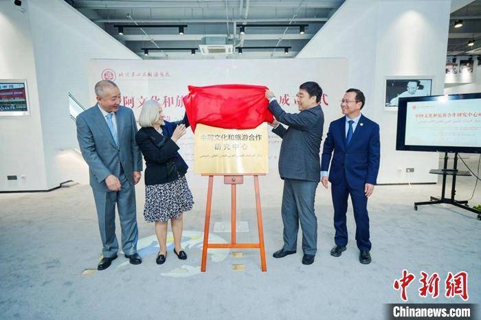 中新网北京8月2日电 8月1日下午,中阿文化和旅游合作研究中心成立仪式于北京第二外国语学院(以下简称“北二外”)举行。阿拉伯国家联盟助理秘书长、社会事务部部长海法·阿布·加扎莱,文旅部国际交流与合作局局长高政,北二外党委书记常宇,北二外党委副书记、院长计金标参加成立仪式并为中心揭牌,成立仪式由北二外党委常委、副院长郑承军主持。