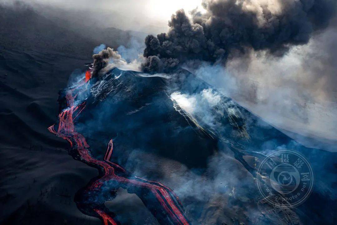 拉帕尔马岛上的Cumbre Vieja火山正在喷发,与其说是关注熔岩流,不如说是关注其对周围景观的影响,这是一匹被遗弃的寻找食物的马。两组图像都有着引人入胜的视觉故事讲述。