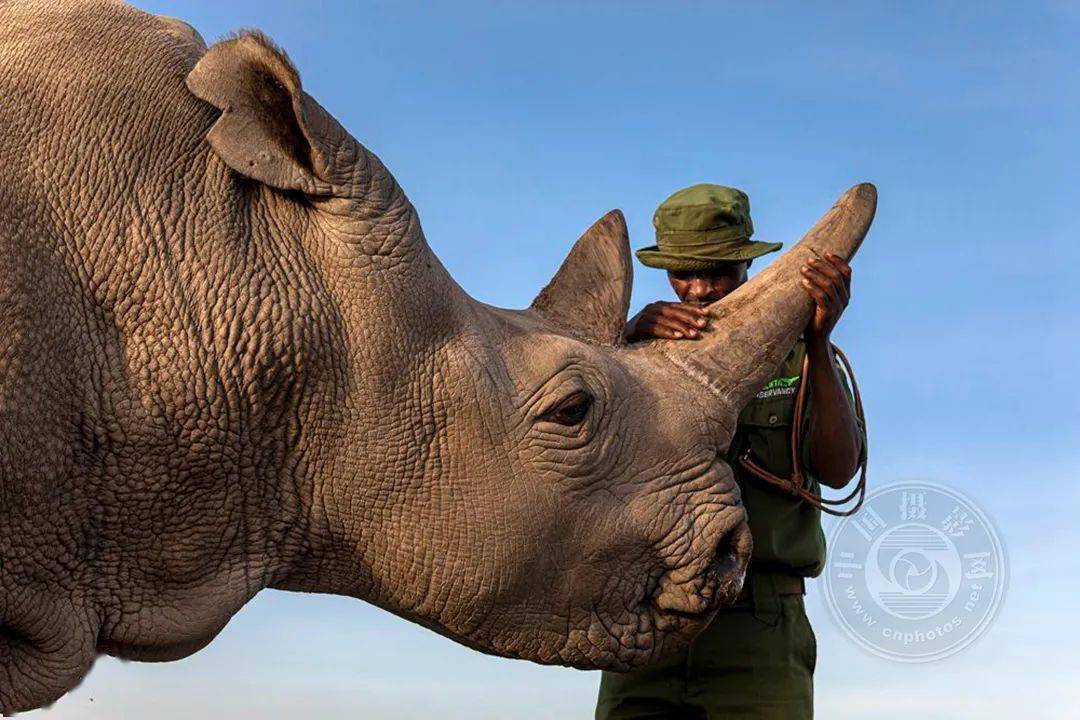 这只33岁的纳金犀牛是世界上仅存的两只北方白犀牛之一,它和它的饲养员Zachary Mutai在肯尼亚奥佩耶塔自然保护区(Ol Pejeta Conservancy,Kenya)的作品完美而敏感地讲述了这个悲伤的故事。这组图像温柔而亲切。