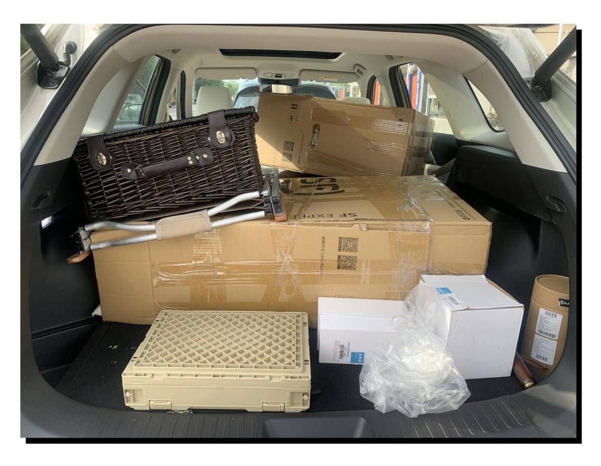 车辆的后备箱据说可以容纳3个28英寸的行李箱,十分宽敞。户外露营用的电烤炉、折叠桌椅全部都能装下。夜间休息时,后排可以180度放倒后,秒变大床房,不用身心疲惫得搭帐篷,夜晚还能透过超大天窗,看到满天繁星。