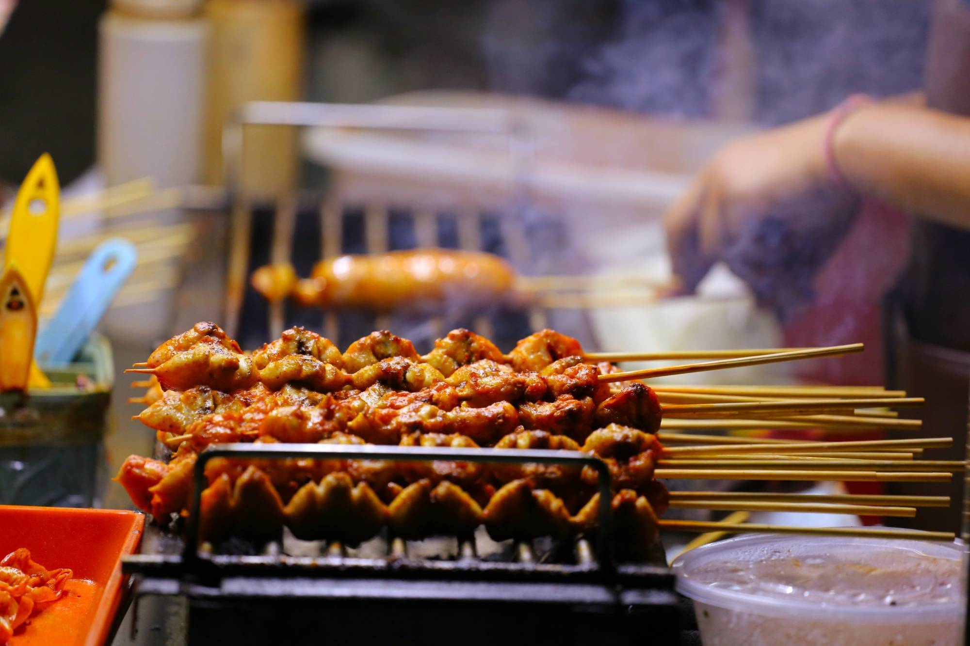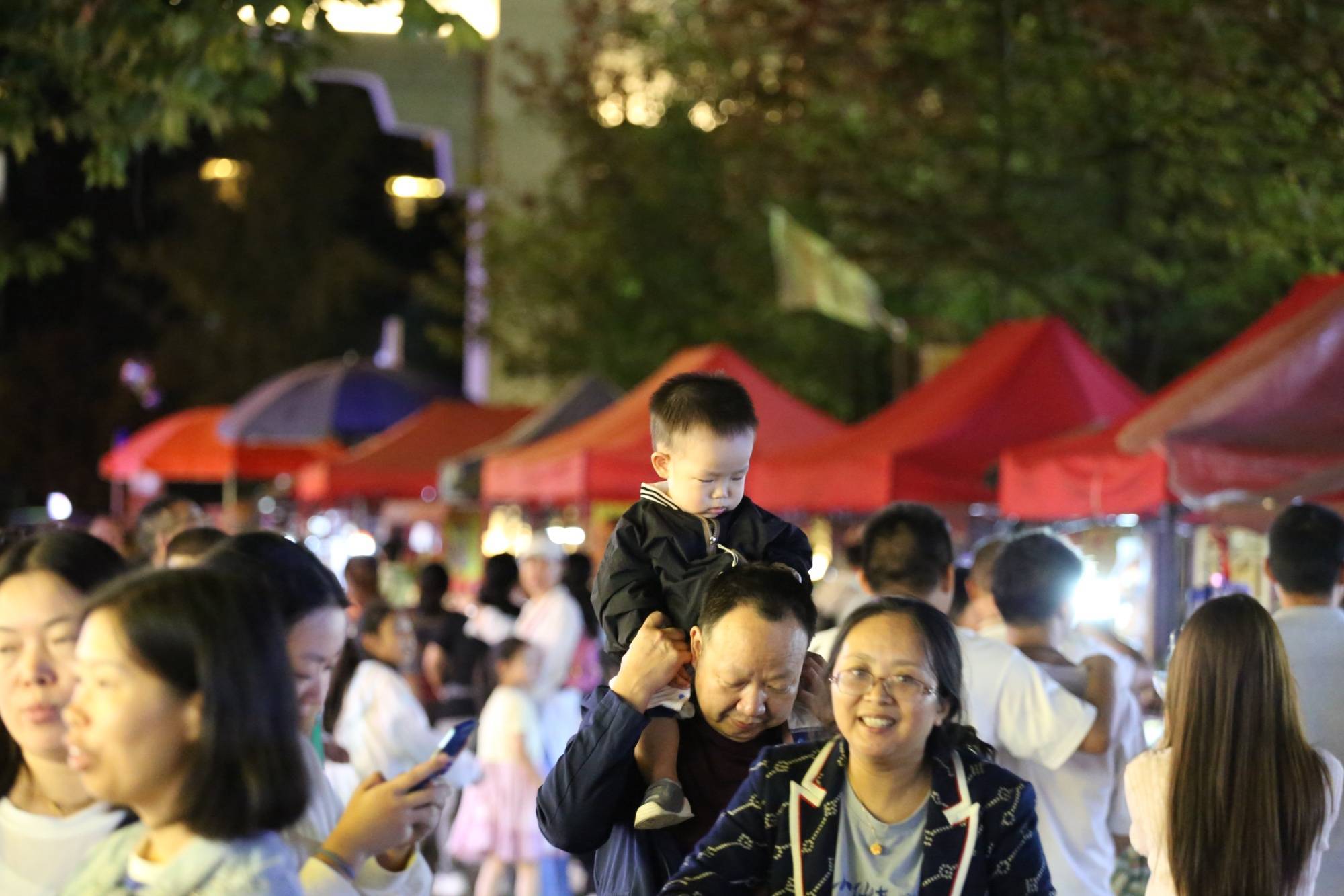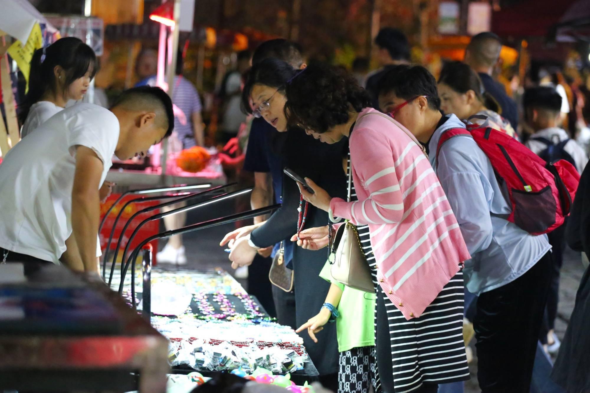 游客在六盘水市水城古镇夜市摊上购买小吃(赵桦 摄)