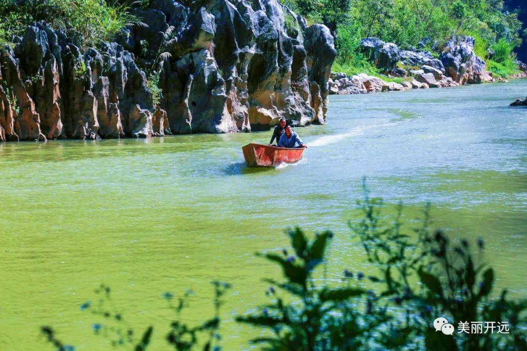 江河浩荡,日夜奔流。南盘江辗转蜿蜒,在开远大地上冲刷出一条峡谷,大转弯向东而去。南盘江两岸时而悬崖峭壁、怪石嶙峋,雄奇壮观、气势磅礴,时而岩径萧绦,林木葱郁,幽深而神秘,滇越铁路沿江穿行,犹如“巨龙”蜿蜒在崇山峻岭之间,这里又被当地人称为“小三峡”。