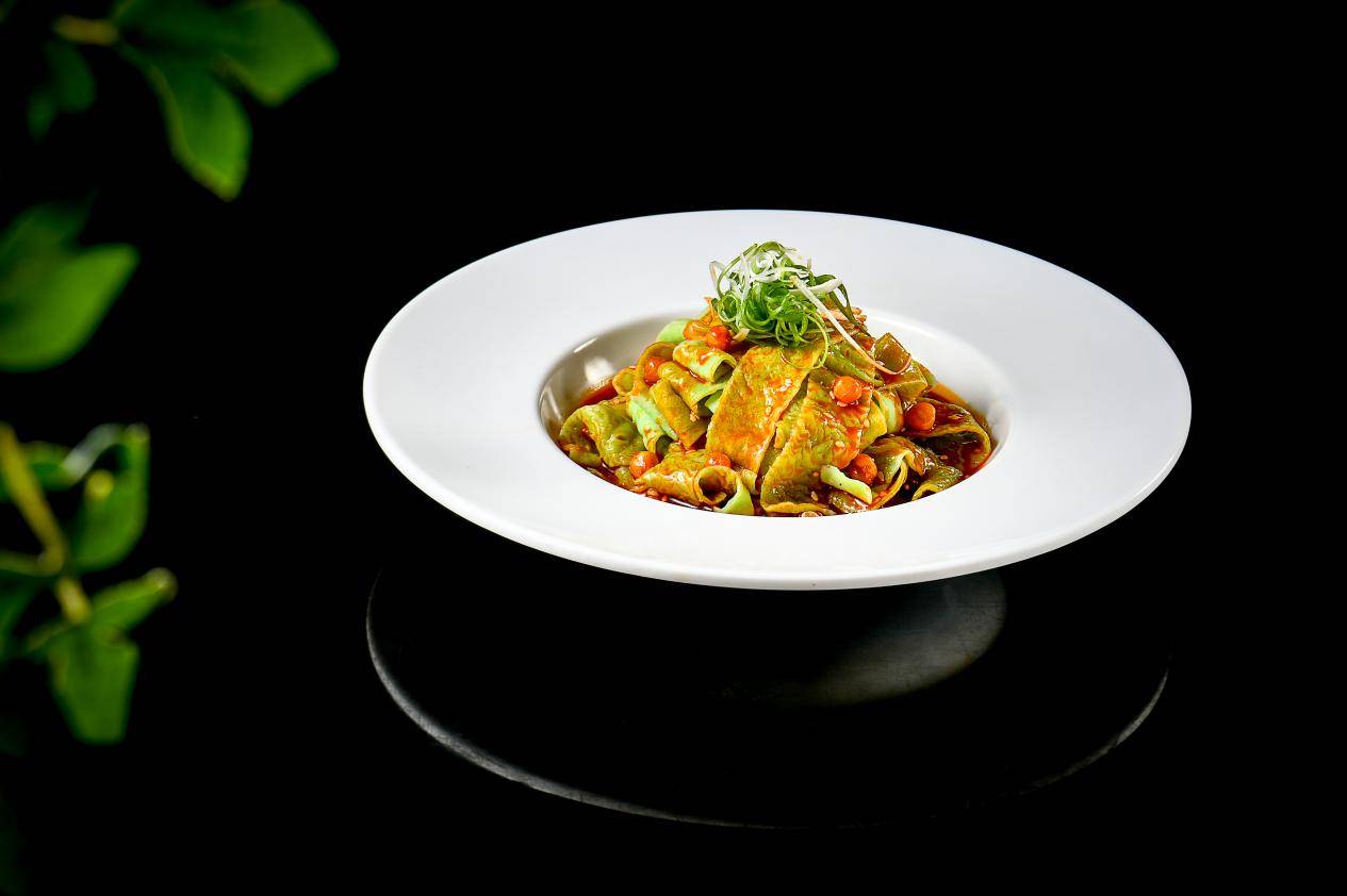 如果有一种颜色能给夏天带来一丝清凉,那一定是绿色。翠绿色的荷叶粉是源自陕北的民俗味道,民间古法工艺传承,全程均手工制作,淋上有红秘制辣椒油,清香与川香兼具,咸中带鲜的味道令人沉醉。
