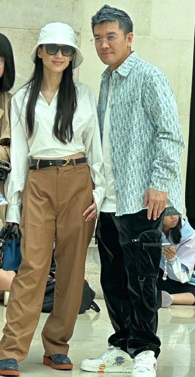 黄圣依和杨子合影,夫妻俩真是男才女貌,十分般配。