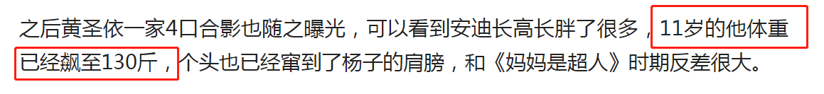 不过,看安迪的身高已经达到爸爸耳朵,几乎快要超过1米65黄圣依了,显然他的身材略微圆润一点也没什么不可,更何况“男大十八变”,相信安迪长大后会是个高大的帅小伙。
