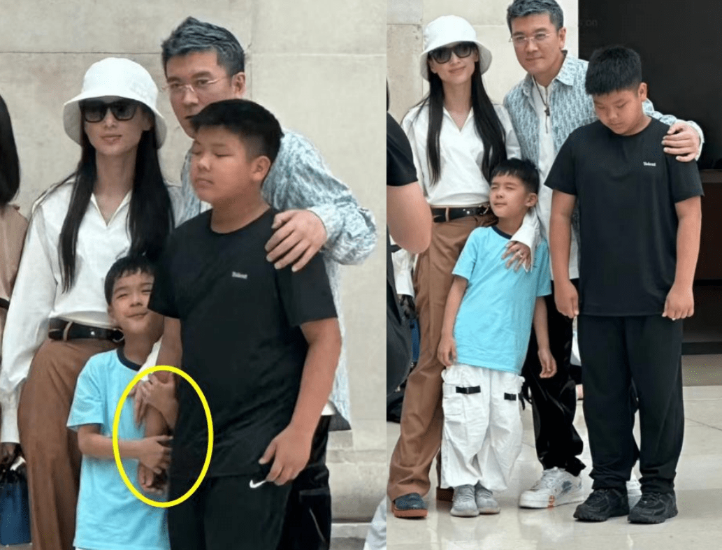 除此之外,杨子黄圣依一家四口还一起与一位路人合了影,夫妻俩并肩站在一起一手一个儿子,看起来非常和谐。小儿子安麟对着镜头做起鬼脸,模样搞怪非常可爱。