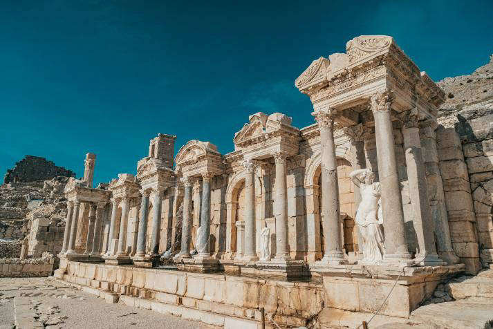 在爱琴海地区讨论古城时,就不得不提每年吸引成千上万本地和外国游客的Ancient City of Ephesus(以弗所古城)。以弗所是希腊化和罗马时期繁荣的大型港口城市之一,自2015年以来成为联合国教科文组织世界文化遗产。The Celsus Library(塞尔苏斯图书馆)是土耳其最大的图书馆之一,可容纳30,000名游客;还有古代剧院、Gate of Mazaeus and Mithridates、the Temple of Hadrian和the Temple of Artemis(阿尔忒弥斯神庙)。阿尔忒弥斯神庙是古代世界七大奇迹之一。此外,还有展示罗马富裕家庭生活方式的“阶梯式住宅”。在弗所,您还可以参观House of the Virgin Mary(圣母玛利亚故居)、the Tomb of St. John(圣约翰墓)和the Cave of the Seven Sleepers(七位沉睡者的洞穴)。