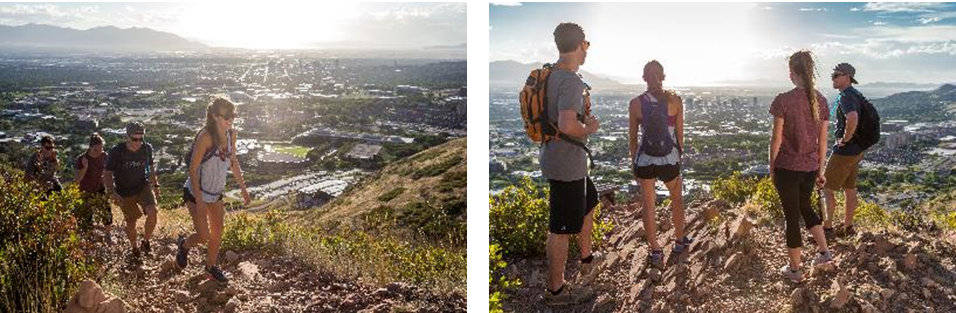 右:在“客厅”小径俯瞰盐湖城 © Jay Dash Photography/Visit Utah