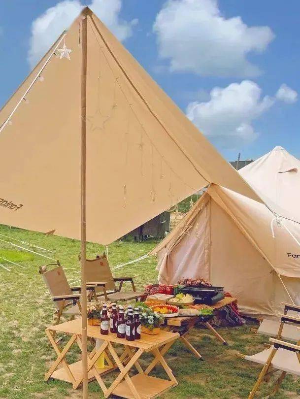 蓝天之下,环山亲水,太白山無山居一顶顶低饱和度的帐篷,辅之同样色调的天幕,折叠椅,蛋卷桌都被安排得秩序井然,金属制厨具,印第安风情的羊毛毯,手冲咖啡,复古煤油灯,篝火……是网红小姐姐们的最爱,星空帐篷、草坪露营、温泉酒店、無山云宿,让每位游客都找到最初的期待和意外的惊喜。