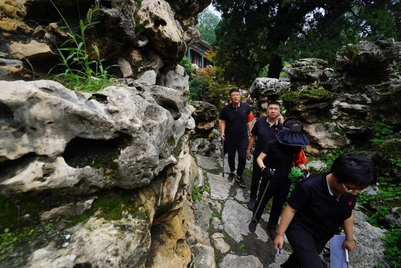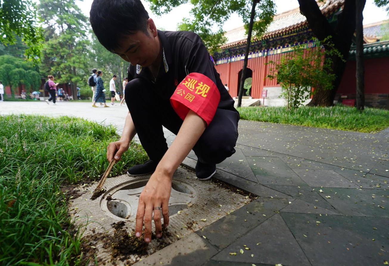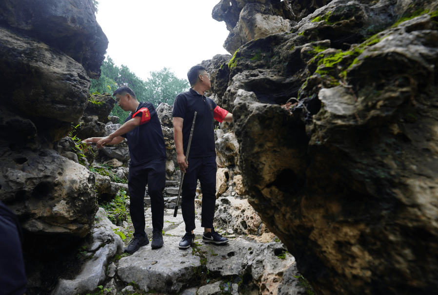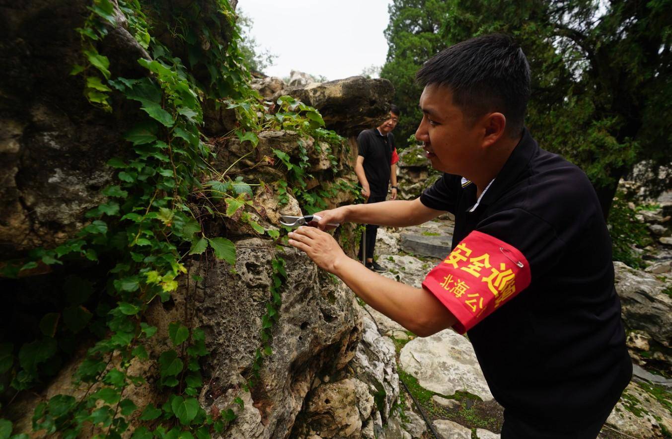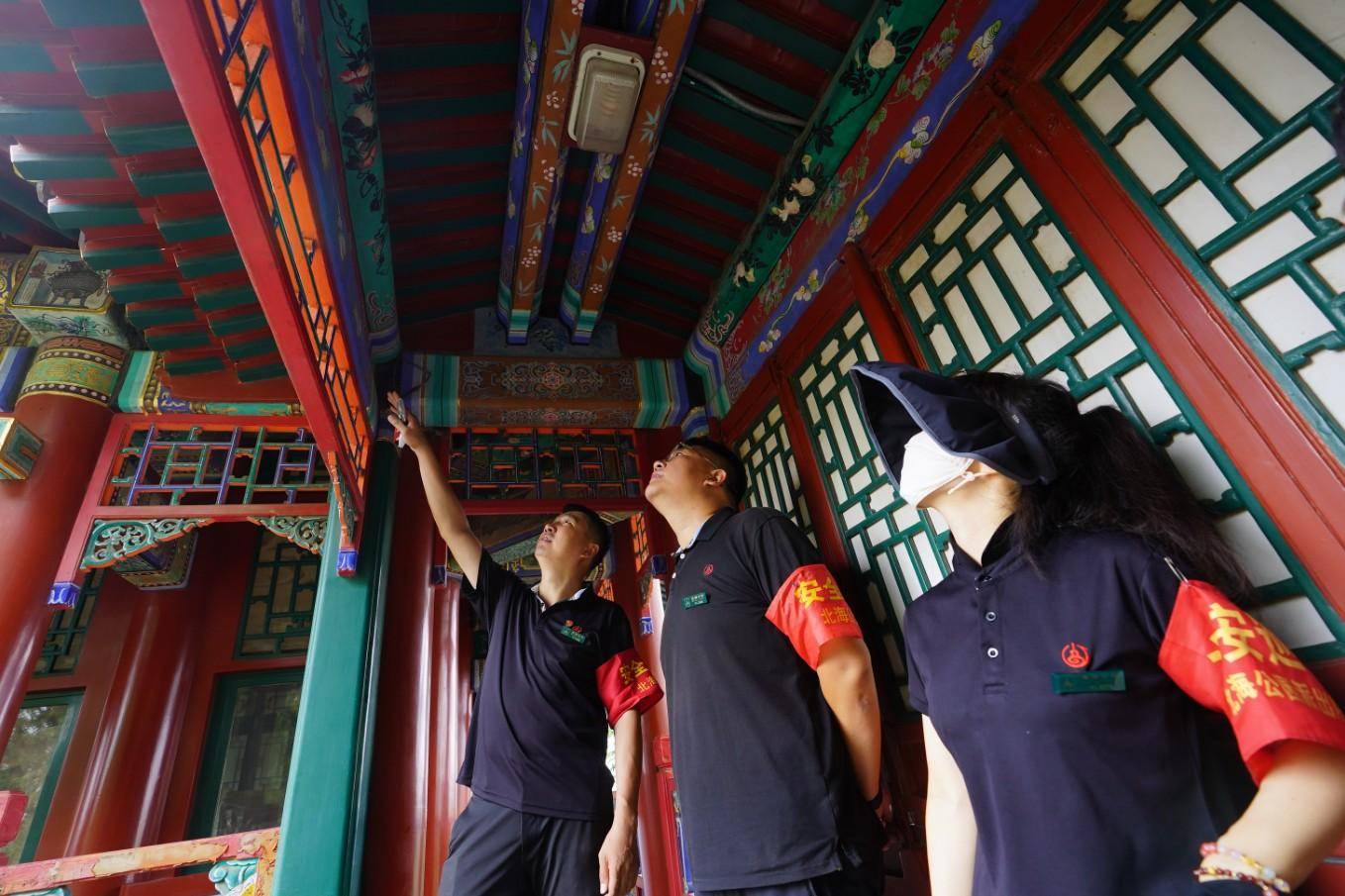 8月2日,雨后开园第一天,为确保游客安全游览,北海公园各队文物巡查员及时对园内古建、假山、太湖石等进行雨后检查,并作好记录。