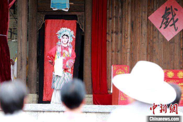8月2日,村民、游客在章丘区石匣村听戏。梁犇 摄