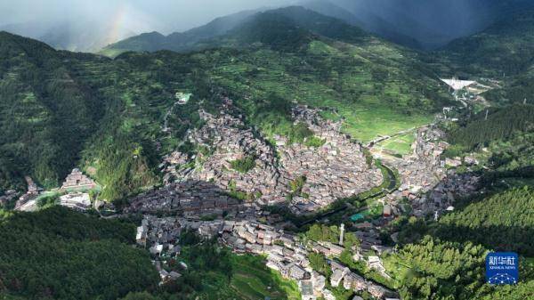 这是8月1日拍摄的贵州省黔东南苗族侗族自治州雷山县西江千户苗寨景区(无人机照片)。