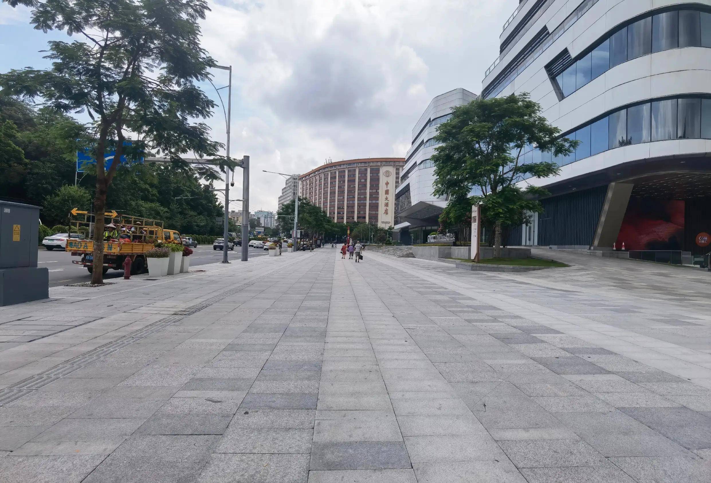 记得这里原为广州体育场馆,路边还是绿树成荫。后来拆除建成了国际会议中心,将前面的绿树尽数拔除,变成了广场,甚是开阔,蔚为壮观,却对市民街坊、行人过客不够友好。