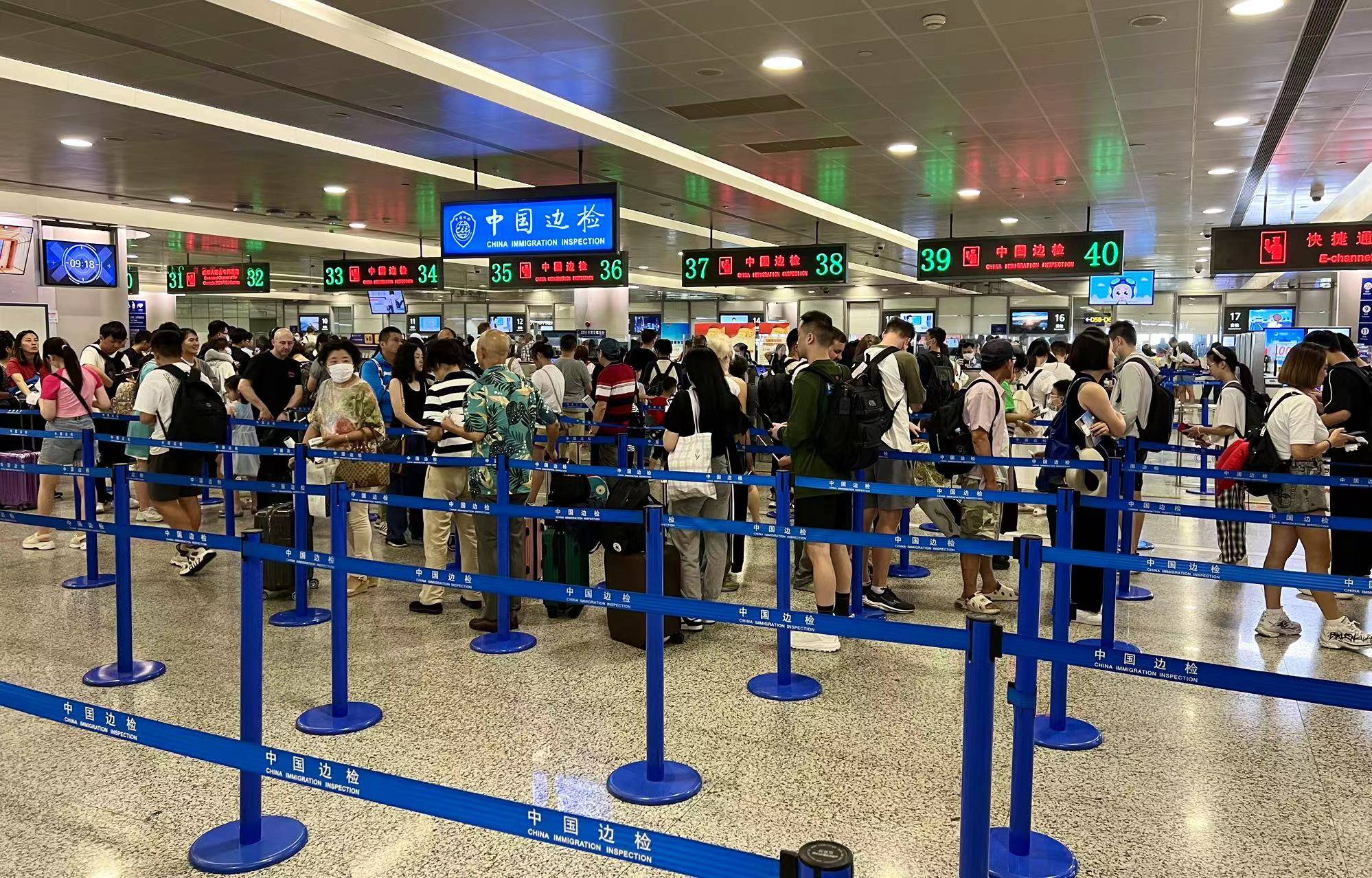 候机人流中,像李先生这样开启暑期亲子游的旅客不在少数。随着全国暑运持续“升温”,浦东国际机场口岸跨境研学团、亲子旅游、探亲访友等多股客流较集中。其中,前往东南亚、日韩等国家和港澳地区等热门旅游目的地的客流数量约占浦东机场口岸出境旅客总量一半以上。