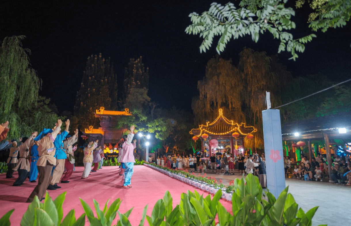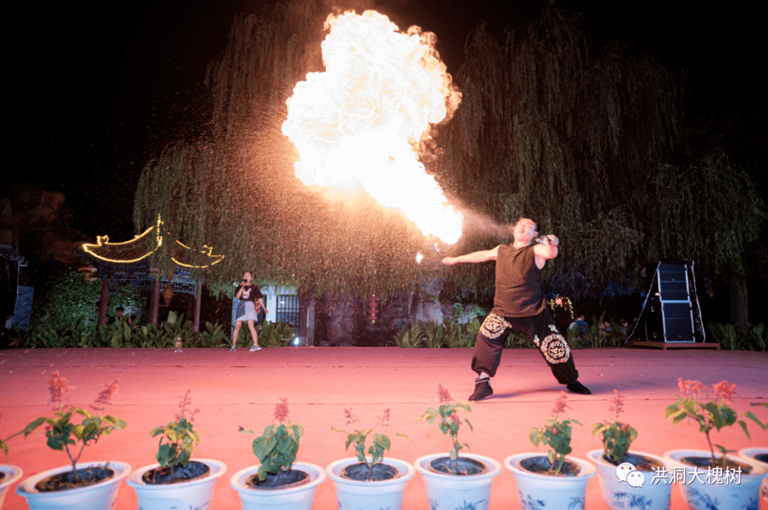 除了每周不同的特色主题,夜游期间各种精彩演艺也轮番上演。“流光夜舞”“月下起舞”“古槐秘盒”“乡亲巡游”“变脸”“喷火”“魔术杂技”……游客不仅能零距离观看演出,还可以与演员趣味互动。夜游项目负责人林勇表示:“夜游期间,景区的营业时间延长至晚上22:30,市民跟游客们在夜晚也可以通过餐饮娱乐、文化休闲、精彩表演感受到老家别样的文化内容。”
