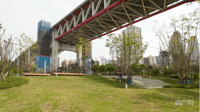 朝天门大桥下市民活动游憩的公园一角(央广网发 重庆住建委供图)