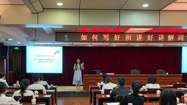 为学员们讲授《如何写好和讲好讲解词》。