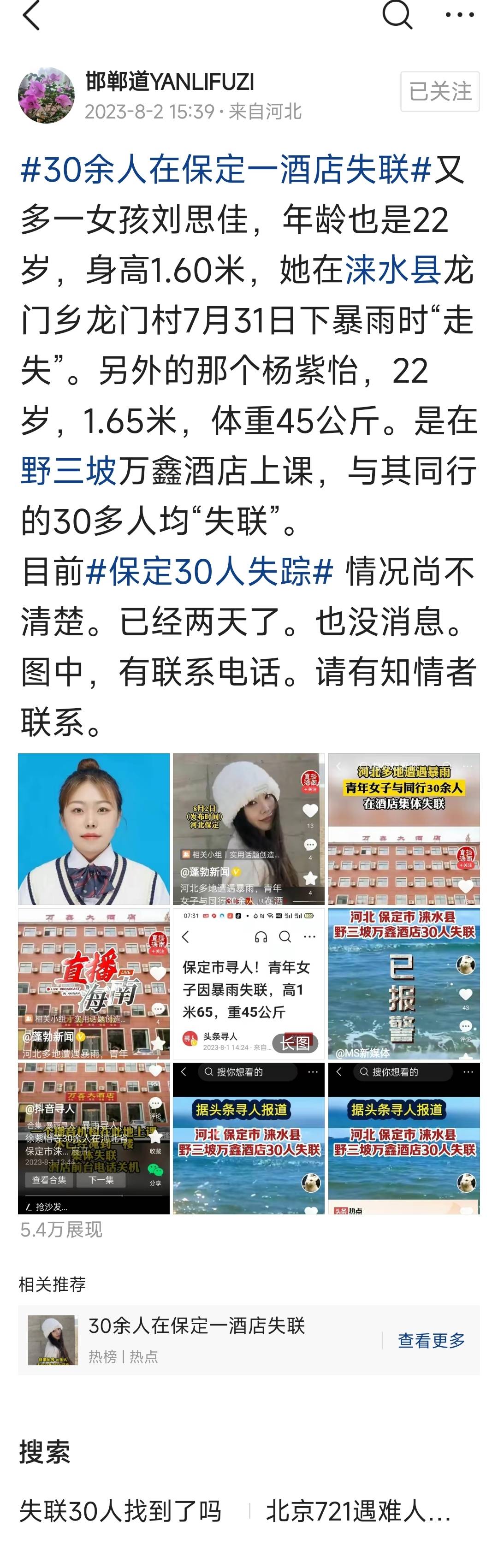 原标题:保定野三坡景区万鑫酒店多名失踪人员找到了没有