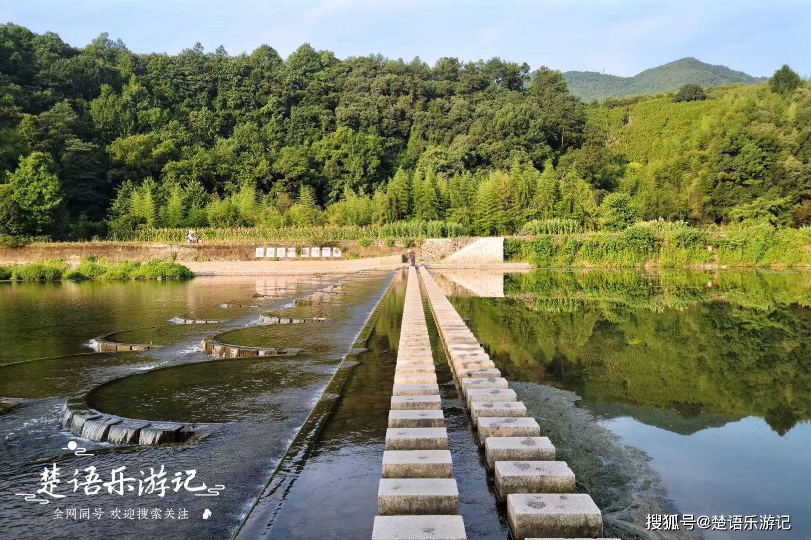 从这里再往上游走就接近了长潭村。这里除了有一座现代大桥,还有一座拦水坝,上面砌了许多规则的方砖,形成了矴步桥。这里的溪水也很旺盛,但是已经没有办法从堤坝上流过。几位垂钓者一字排开,在堤坝上钓鱼。