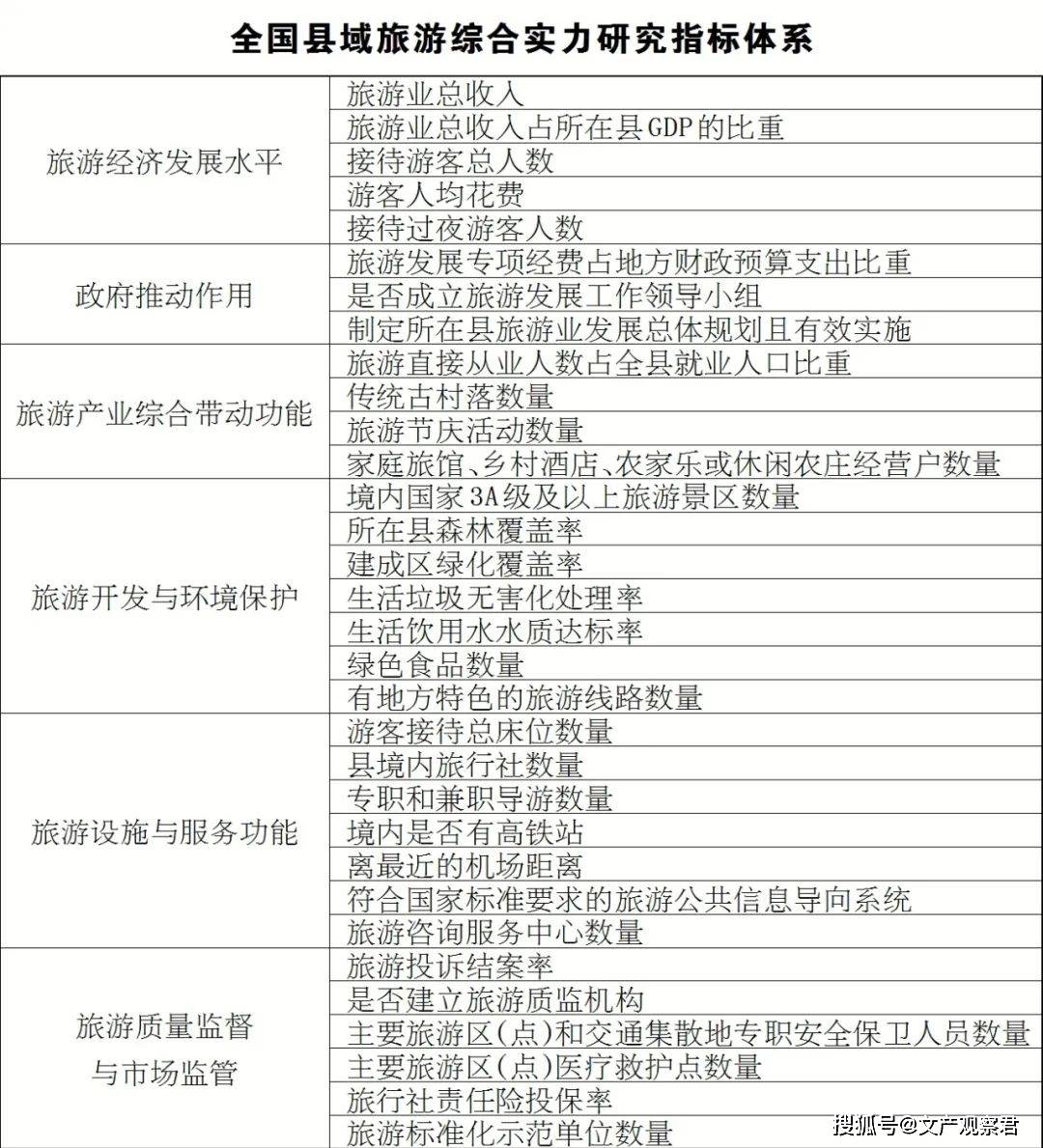 报告显示,县域旅游综合实力研究从旅游经济发展水平、政府推动作用、旅游产业综合带动功能、旅游开发与环境保护、旅游设施与服务功能、旅游质量监督与市场监管6个方面32个指标构建研究体系,得分居前100位的即为2023年全国县域旅游综合实力百强县。