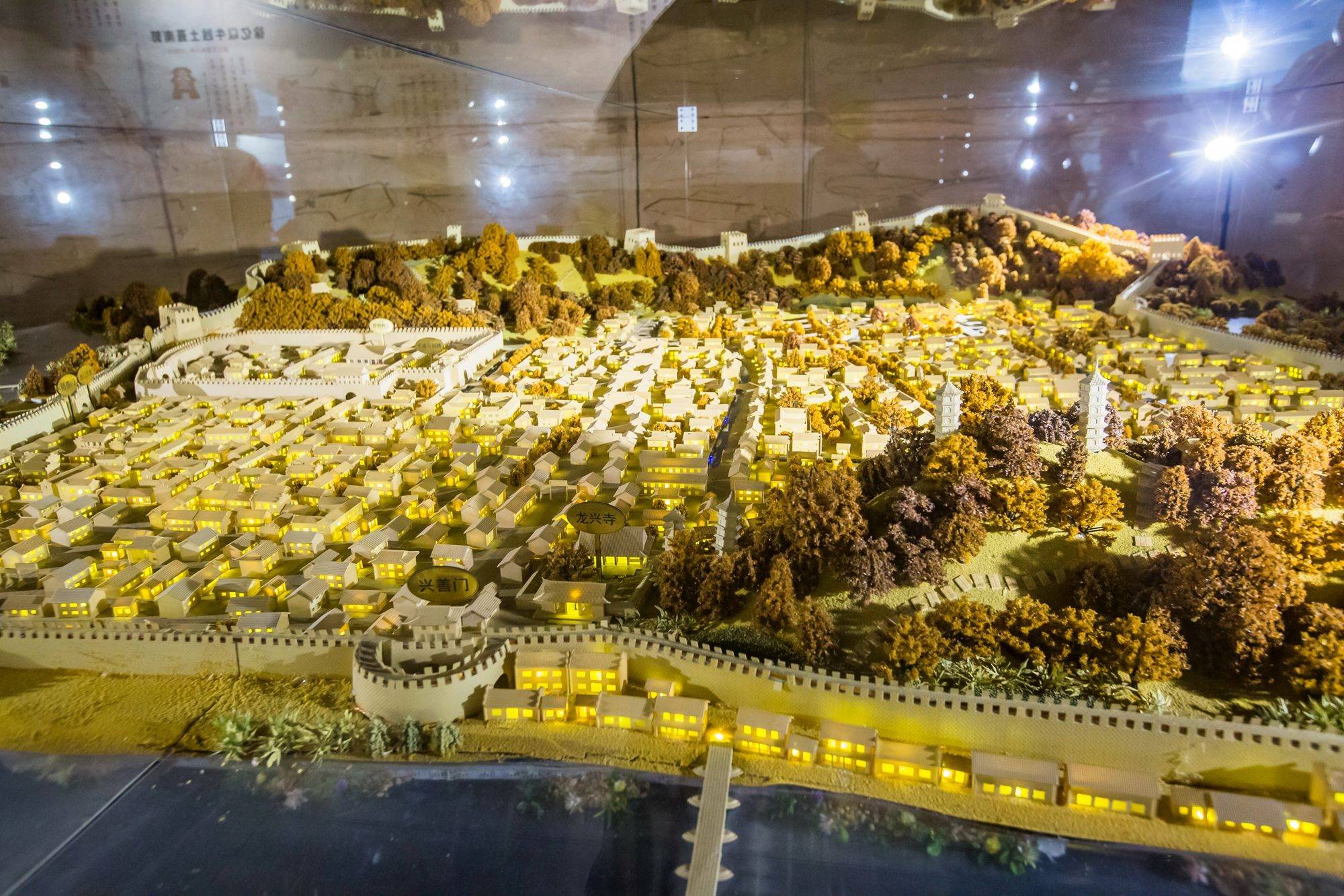 博物馆位于紫阳古街附近,走入展馆,巨大的沙盘还远出城墙和临海古城的全貌。对于古城来说,台州府城墙并非只为保护城池、抵御敌军而用,其墙体有三分之一是沿灵江而筑的,高高的城墙犹如大堤,自修建之日起也起着御洪的作用。